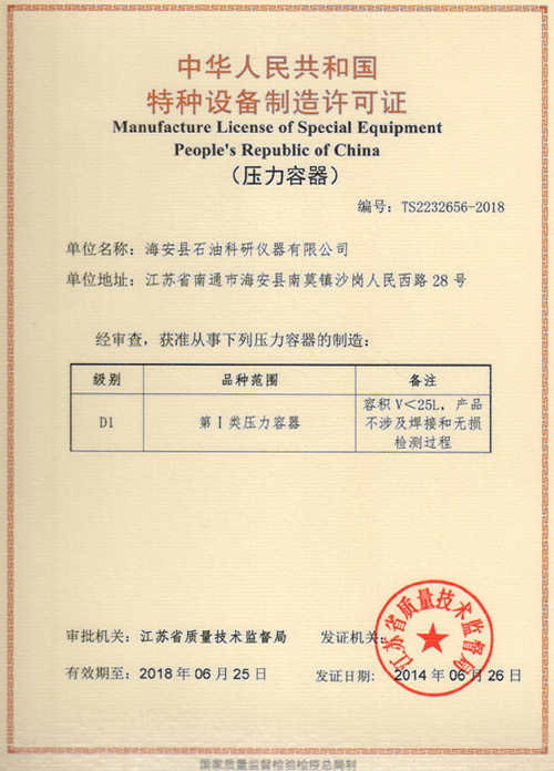 特種設(shè)備制造許可證(壓力容器)